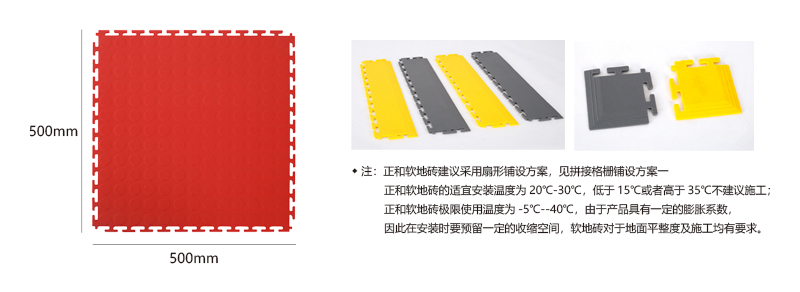 1、本產(chǎn)品應(yīng)用在普通車間室內(nèi),如需抗靜電、抗老化、阻燃等特殊指標(biāo),請(qǐng)著重說(shuō)明;2、本產(chǎn)品建議施工環(huán)境溫度為25℃~35℃之間,溫度過高或者過低都會(huì)對(duì)安裝和使用產(chǎn)生一定的影響;3、本產(chǎn)品不建議在室外或者有陽(yáng)光直射的地方使用;4、產(chǎn)品鋪設(shè)完成后需靜置24小時(shí),讓其張力自然釋放后方能放置重物;5、鋪設(shè)本產(chǎn)品100平米以上面積需要設(shè)置伸縮縫,充分考慮熱脹冷縮的影響;6、如鋪設(shè)位置經(jīng)常過載重型車輛,在條件允許的情況下最好采用膠粘劑固定;7、施工過程中一定要放線鋪設(shè),從一側(cè)往另一側(cè)延伸過去,嚴(yán)禁從兩側(cè)同時(shí)鋪設(shè)往中間匯集。