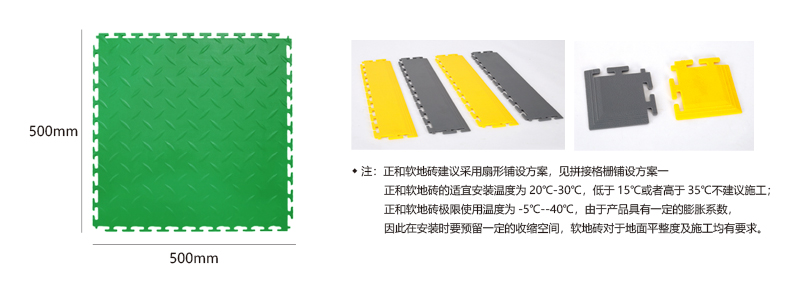 軟質(zhì)絕緣地板能將每個(gè)獨(dú)立的地板快速拼裝成整體地面,專利型鎖扣結(jié)構(gòu)連接能力更強(qiáng),可承受叉車的來(lái)回碾壓。施工過(guò)程中無(wú)需膠黏劑等